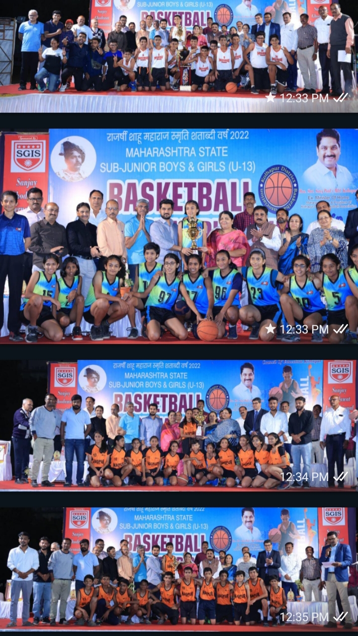 छ. शहाजी लॉ कॉलेज बास्केटबॉल मैदान येथे झालेल्या राज्यस्तर सब ज्युनिअर बास्केटबॉल स्पर्धेच्या अंतिम सामन्यात मुलात “मुंबई उपनगर” तर मुलींत “पुणे” अव्वल कामगिरी करत विजेतेपद पटकविले. आमदार ऋतुराज पाटील यांचे अध्यक्षतेखाली व प्रमुख पाहुणे आमदार जयश्री जाधव यांचे हस्ते सोमवारी दि. 31 ऑक्टोंबर, 2022 रोजी स्पर्धेतील विजेत्या संघांना बक्षीस वितरण करण्यात आले.