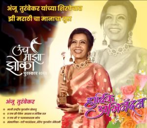 झी मराठी वाहिनी मार्फत स्त्री कर्तुत्वाचा सन्मान करण्याकरिता दिल्या जाणाऱ्या “उंच माझा झोका” या बहुमोल पुरस्काराने आपली कोल्हापूरची रणरागिनी अंजू तुरंबेकर यांना दि. २७ ऑगस्ट २०२३ रोजी मुंबईमध्ये पार पडलेल्या या दिमाखदार सोहळ्यामध्ये गौरविण्यात आले.