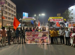 मुंबईत मराठा आरक्षण आंदोलनाच्या नियोजनासाठी जाणारी पहिली स्वयंसेवकांची टीम व सर्व कार्यकर्ते छत्रपती ताराराणी चौक येथे शुक्रवारी (दि 19) जमा झाले.  यावेळी या स्वयंसेवक व कार्यकर्त्यांनी जय जिजाऊ..,जय शिवराय…,एक मराठा लाख मराठा… च्या घोषणांनी परिसर दणाणून सोडला.