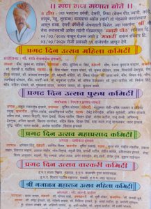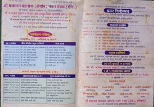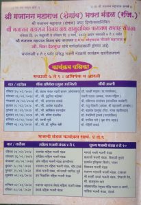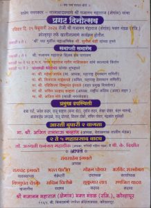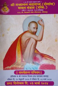 – श्री गजानन महाराज (शेगांव) भक्त मंडळ (रजि.)तर्फे रविवार दि. 25 फेब्रुवारी 2024 ते रविवार दि. 3 मार्च 2024 या काळात श्री गजानन  महाराज (शेगांव) प्रकट दिन निमित्त “हरिनाम व श्री गजानन विजय ग्रंथ सामुदायिक पारायण सप्ताह सोहळा”