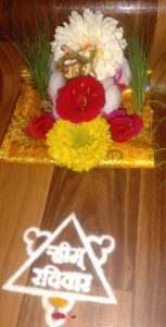 घरातील देव्हाऱ्यांमध्ये श्री गजानन महाराज (शेगांव) प्रकट दिनानिमित्त बांधण्यात आलेली आकर्षक पूजा