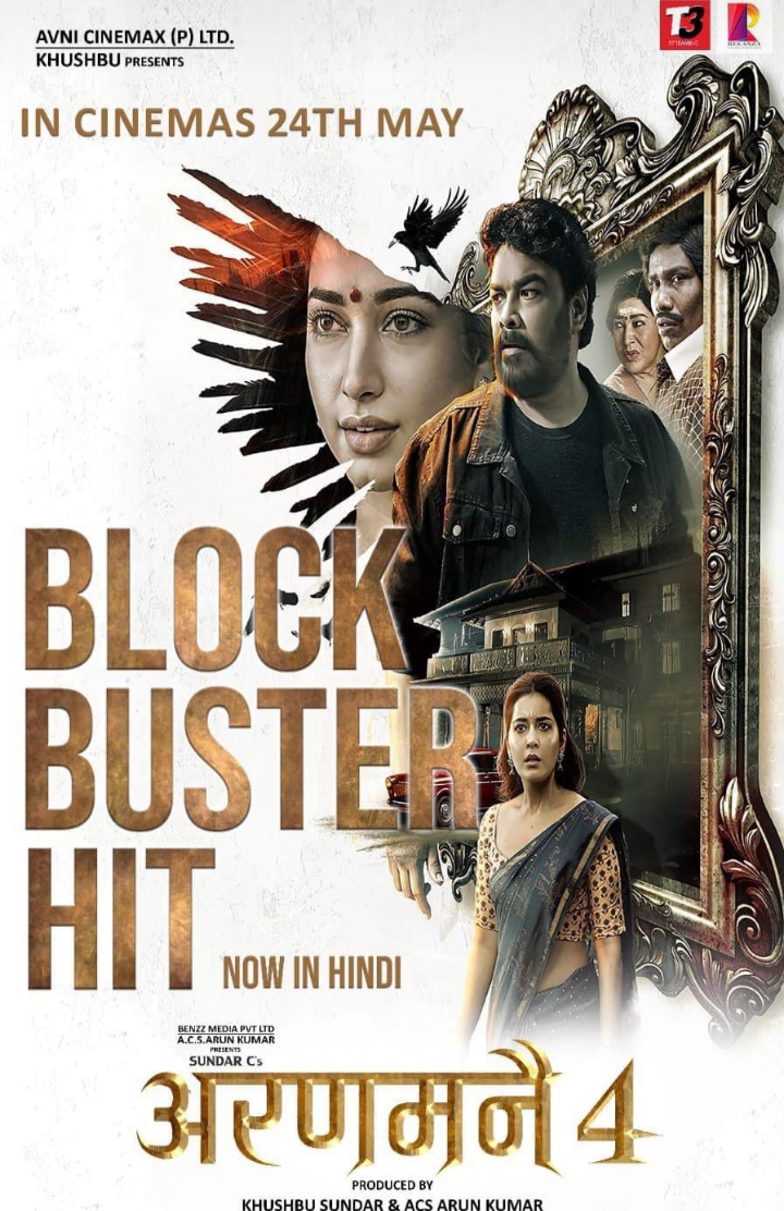 मागील काही दिवसांपासून ‘अरनमानाई ४’ या तमिळ चित्रपटाने दक्षिणेकडे बॅाक्स आॅफिसवर अक्षरश: धुमाकूळ घालत रसिकांवर मोहिनी घातली आहे. ३ मे रोजी प्रीमियर झालेल्या या चित्रपटाला प्रेक्षकांचे भरभरून प्रेम मिळत आहे. ‘अरनमानाई ४’ जास्तीत जास्त प्रेक्षकांपर्यंत पोहोचावा या उद्देशाने हा चित्रपट हिंदीतही डब करण्यात आला आहे. २४ मे रोजी ‘अरनमानाई ४’ हिंदीमध्येही रिलीज होणार आहे. या हॉरर-कॉमेडी चित्रपटाने प्रेक्षकांना थरारक अनुभव देत मंत्रमुग्ध केले असून, आता हा चित्रपट हिंदी भाषिक प्रेक्षक वर्गापर्यंत पोहोचण्यास सज्ज झाला आहे., अशी माहिती प्रसिद्धी पत्रकाद्वारे देण्यात आली आहे.