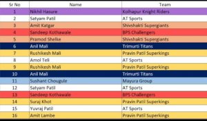 – अंतिम सामन्यात प्रवीण पाटील सुपरकिंग्ज संघावर अंतिम षटकातील ४ चेंडू व ५ गडी राखून मात