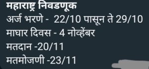 “महाराष्ट्र राज्य विधानसभा”साठी निवडणूक जाहीर