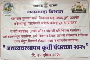 महाराष्ट्र कृष्णा खोरे विकास महामंडळाअंतर्गत कोल्हापूर पाटबंधारे मंडळाच्या वतीने *जलव्यवस्थापन कृती पंधरवडा 2025″ अंतर्गत “शेतकरी संवाद व आपत्ती व्यवस्थापन मार्गदर्शन कार्यशाळा” पार पडली. याप्रसंगी ते बोलत होते.